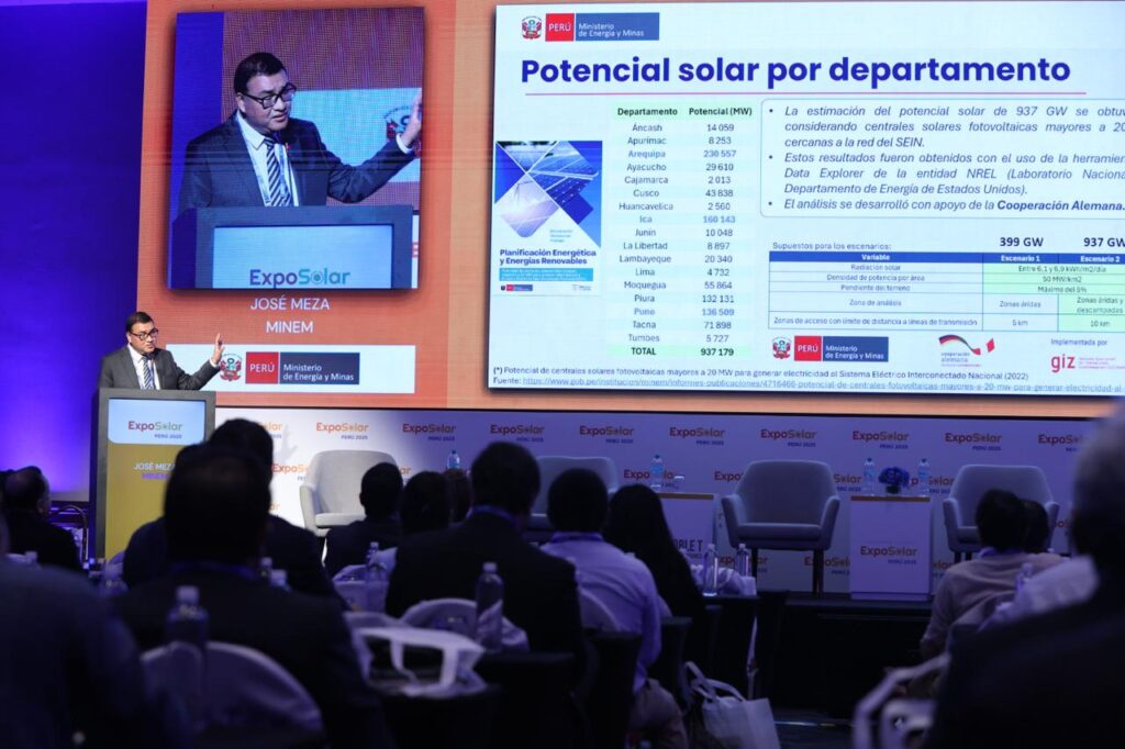 De acuerdo con José Meza Segura, Director General de Eficiencia Energética del MINEM, Perú posee un potencial solar estimado en 937 GW, principalmente concentrado en regiones del sur como Arequipa, Ica y Moquegua. En tanto, la capacidad instalada actual asciende a 946 MW, con una cartera de proyectos en desarrollo que suman más de 2,400 MW hasta el 2028.
