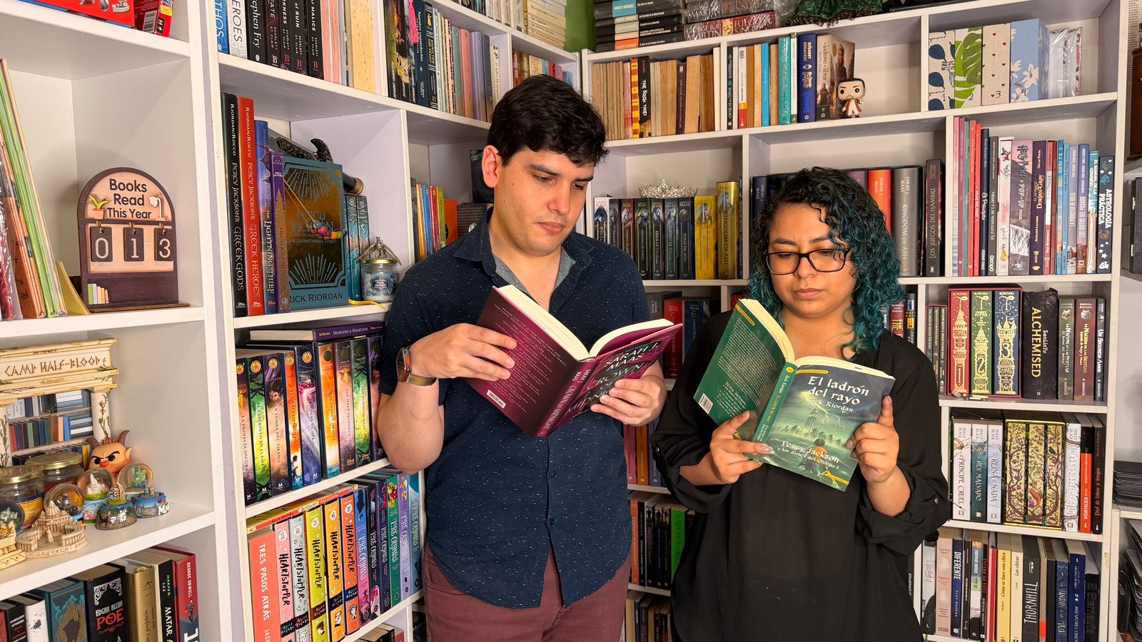 Ambos desarrollaron su hábito lector en la adolescencia. Laly Arce recuerda que su conexión con los libros se fortaleció cuando descubrió las sagas literarias y, especialmente, cuando leyó Crepúsculo, una historia que compartió con amigas del colegio y que incluso se extendió a las salas de cine con cada estreno. Aarón Asmat, por su parte, pensaba que no le gustaba leer porque no terminaba libros completos, hasta que encontró en la leyenda del Rey Arturo y en los libros de Harry Potter el punto de partida de un hábito que no se detuvo. “Fue a partir de ellos que mi gusto por la lectura no paró”, afirma.